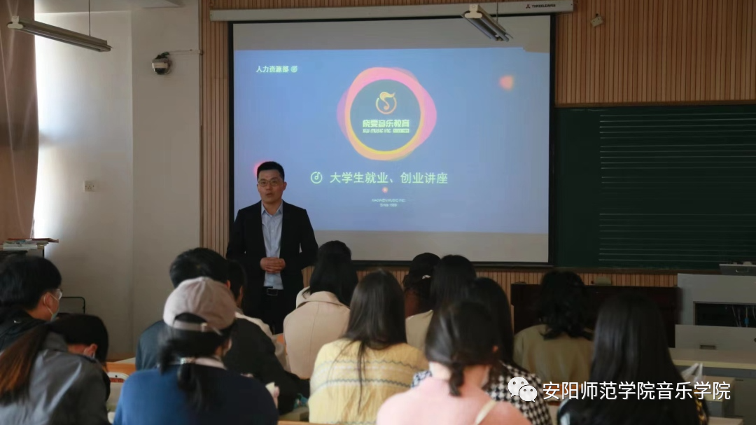会上,晓雯音乐的负责人首先向同学们介绍了该机构的企业背景、企业文化等相关信息。随后又着重介绍了其企业的培训机制、职位发展前景、薪资待遇和晋升渠道等。然后,晓雯音乐的董事长——叶军又从晓雯音乐的“企业文化与信仰”、“办学理念”等几个方面进行了深入的讲解,其风趣幽默的演讲赢得了同学们的阵阵掌声。讲解完毕后,同学们对岗位相关问题进行了踊跃的提问,晓雯音乐的负责人一一进行了详细解答。活动现场气氛十分活跃,在经过以上的讲解和提问环节后,很多同学心仪该企业并现场投递了简历、进行了面试,招聘活动圆满结束。