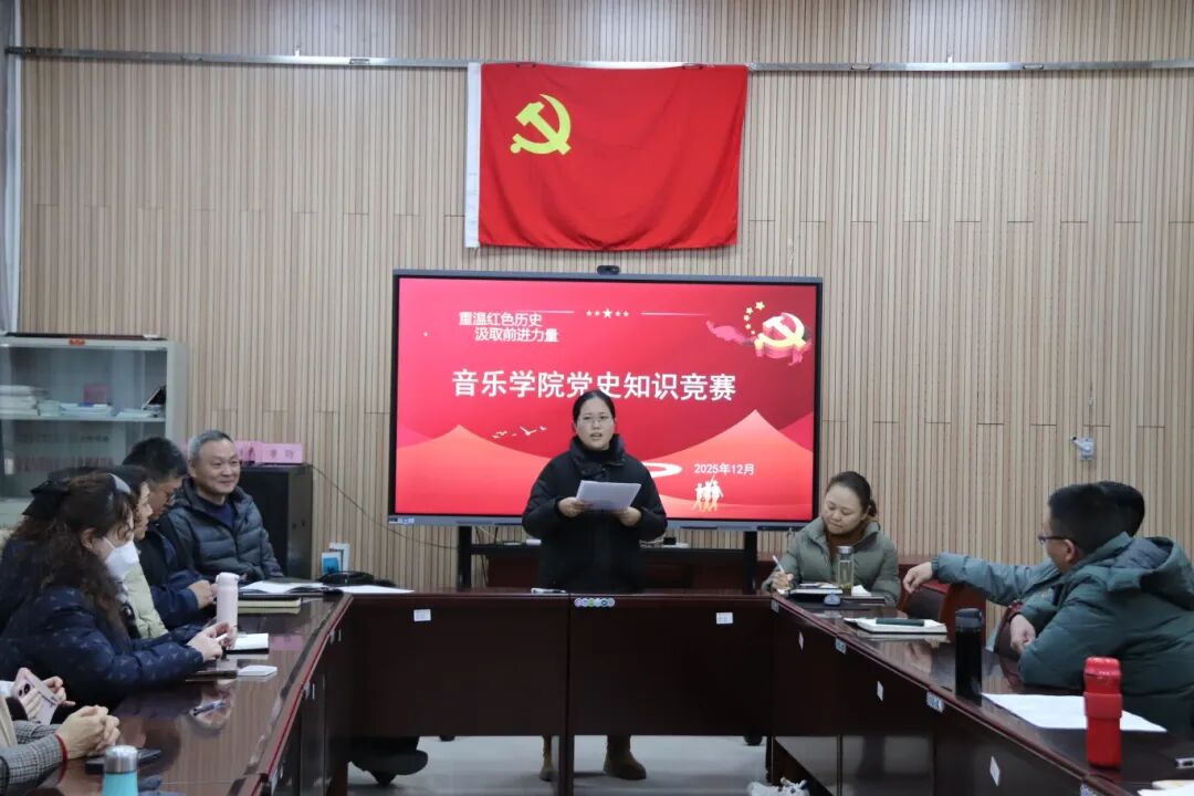 12月5日,由我院党委主办的"重温红色历史,汲取前进力量"党史知识竞赛在和园A109会议室举行。活动由我院党委书记杨安民主持,来自各教工支部和学生支部的党员教师组成3支代表队同台竞技。