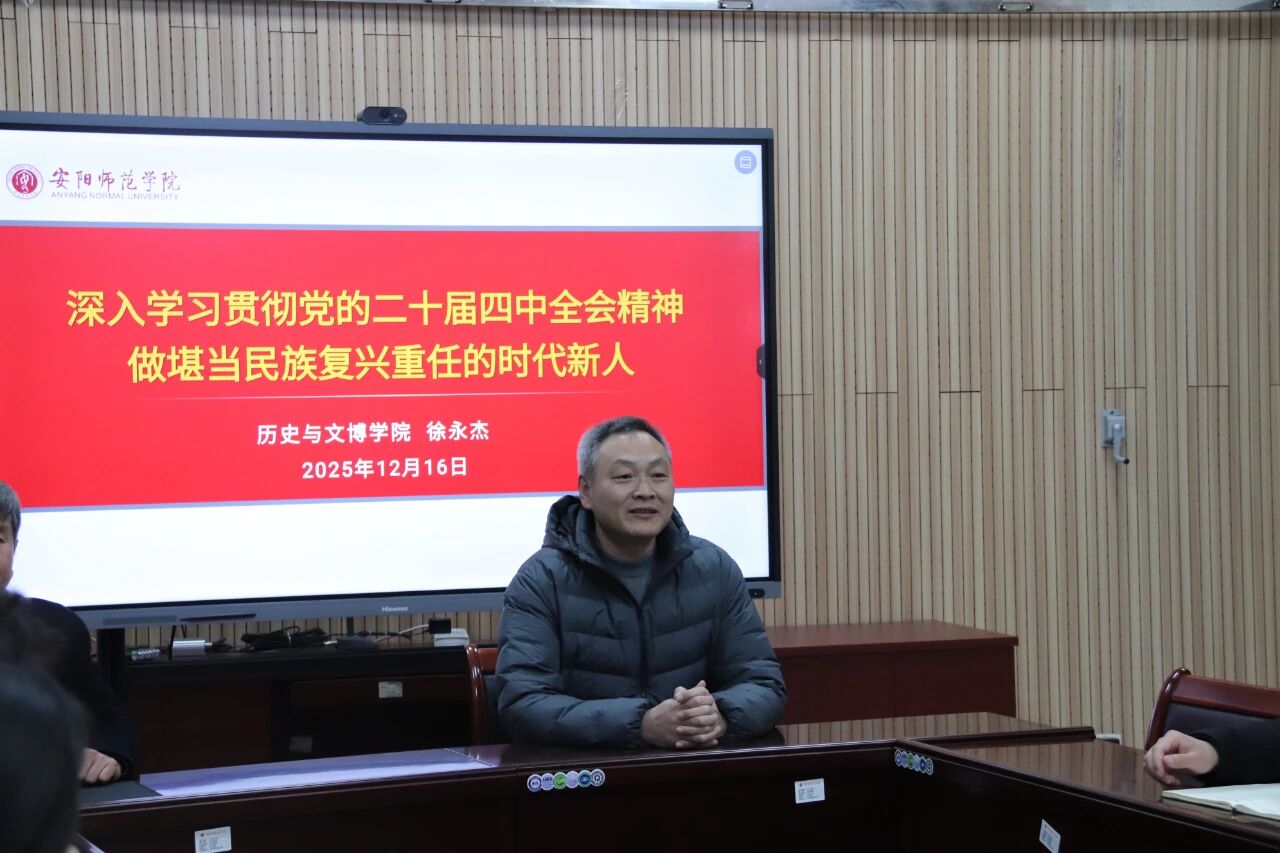 12月16日下午,我院邀请历史与文博学院党委书记徐永杰到我院开展题为“深入学习贯彻党的二十届四中全会精神 做堪当民族复兴重任的时代新人”的讲座。讲座由我院党委书记杨安民主持,我院各学生党支部书记、各支部学生党员、积极分子参加。