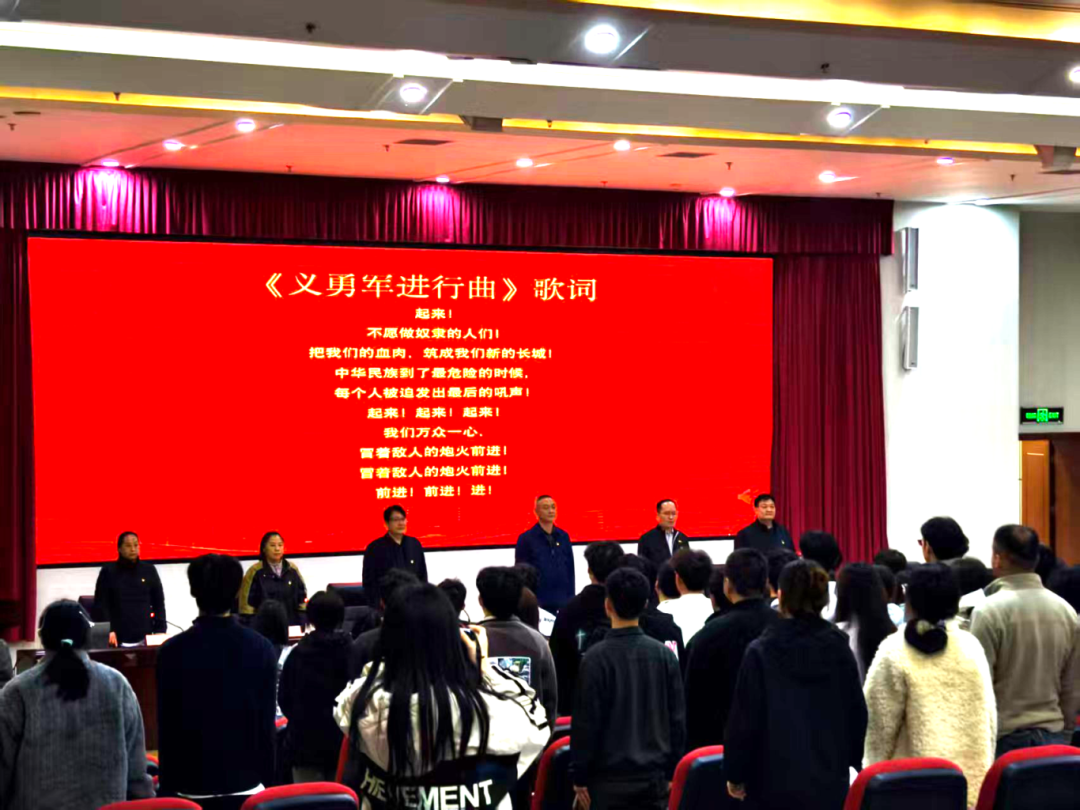 仪式在庄严的《中华人民共和国国歌》声中拉开序幕,全体人员肃立,歌声嘹亮。