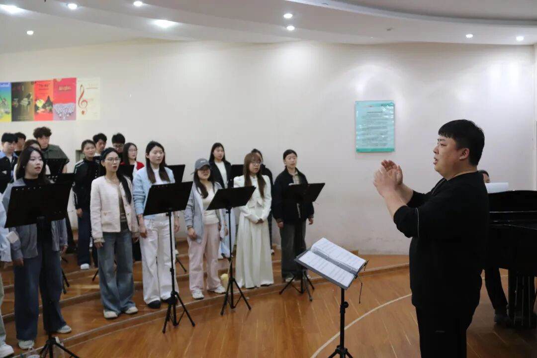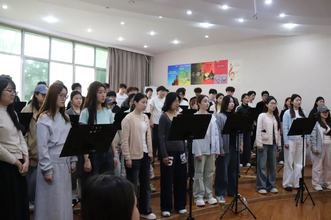 审核现场,合唱团全员精神饱满,完整展演了拟定曲目。作品涵盖流行歌曲、艺术歌曲及古诗词谱曲等多元风格,充分展现了阶段性排练成果。