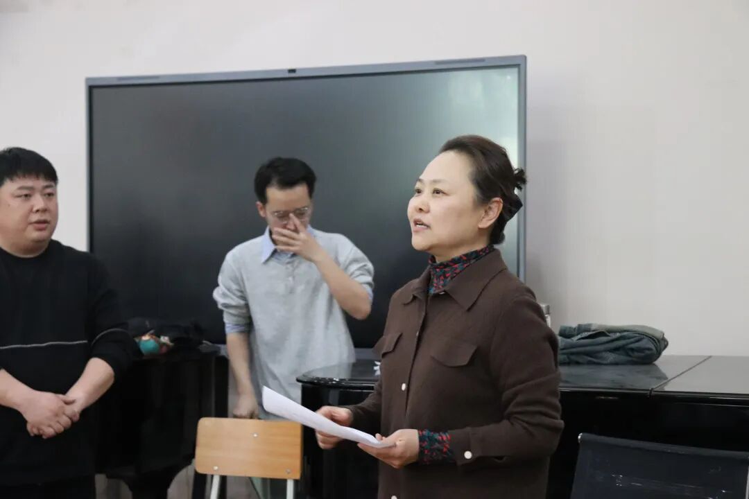 为保障我院合唱团专场音乐会高质量呈现,打磨舞台细节、提升演出水准,4月3日下午,我院院长伊春、副院长邹世东等领导老师于101教室审核此次音乐会参演节目,参演节目的全体师生参加审核。