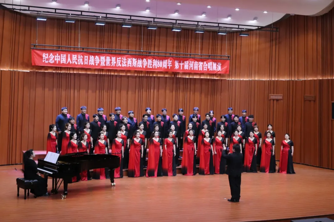 2025年10月25日,我院弦歌合唱团参加了由河南省合唱协会、河南艺术职业学院举行的“纪念中国人民抗日战争暨世界反法西斯战争胜利80周年,河南省第十届合唱展演”活动,在众多优秀队伍中脱颖而出,荣获院校组一等奖的优异成绩!
