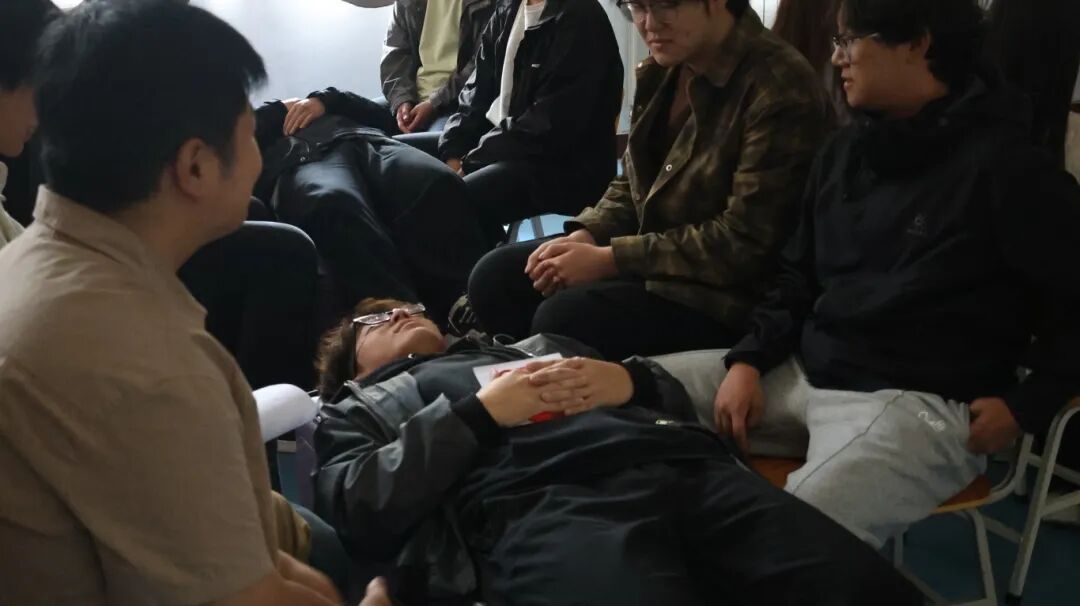 “死亡”体验中,同学们在封闭的暗室中静坐,耳边响起轻柔的引导语,模拟生命逐渐走向终点的静谧过程。在黑暗与寂静中,大家回溯过往生活的点滴,思考“生命的意义”“未完成的心愿”等,不少学生在冥想后说到“第一次如此清晰地感受到生命的脆弱,也更懂当下的可贵”。