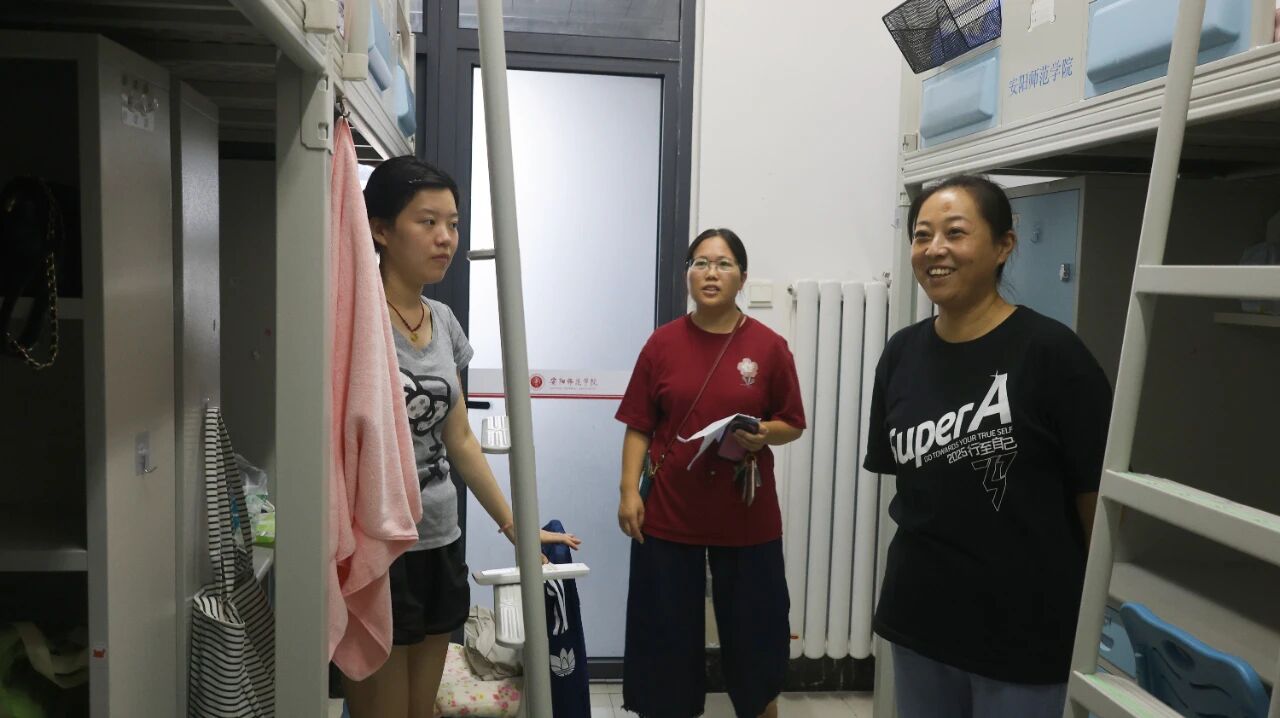 9月7日傍晚,我院党委副书记耿苗率学院全体辅导员及学生会骨干走进新生宿舍,逐间走访、逐人问好。老师们细心查看新生宿舍的各项设施是否完好,细问“吃得习不习惯、住得踏不踏实”,把各项“入学难题”就地化解。一句“有事随时找我们”,让初来乍到的孩子们瞬间卸下拘谨,在陌生校园里触摸到第一份家的温度。